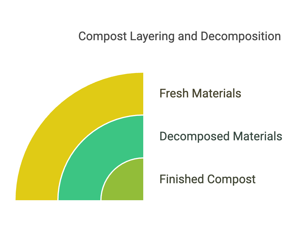 A cross-section view of properly developed compost showing the transformation from fresh organic material.